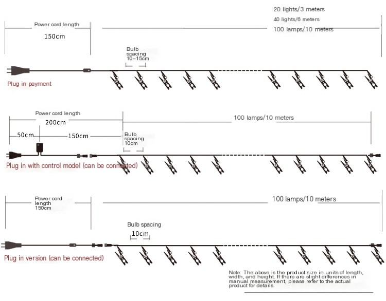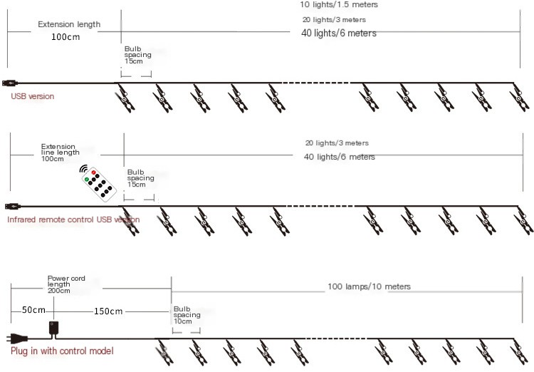 Erhältlich in verschiedenen Längen und Leistungsoptionen, können Sie zwischen batteriebetriebenen oder USB-betriebenen Varianten wählen, die Ihren Bedürfnissen entsprechen. Jedes Set verfügt über ein warmweißes Licht, das eine gemütliche Atmosphäre schafft – perfekt für jeden Anlass, von Weihnachtsfeiern bis hin zur alltäglichen Wohndekoration.